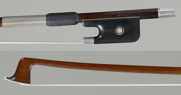 Sartory is arguably the greatest bowmaker of the 20th century. He began his training with Charles Peccatte, later working with Alfred Lamy, who greatly inspired his work.   Sartory set up on his own in 1889, already having established a reputation as an excellent maker among his peers. Even before World War I his reputation had grown so much that he hired several assistants, including Hermann Prell and Otto Hoyer. After the Great War he hired as assistants such fine archetiers as Jules Fetique, Louis Morizot, and Louis Gillet. By having such fine assistants, he was able produce bows to satisfy the ever growing demand for his work, always finishing and perfecting the bows personally. This viola bow is an excellent example of his work, and belonged to the longtime principal violist of the San Francisco Symphony and later the Takacs Quartet, Geraldine Walther. It draws a rich and colorful tone, and is exceptionally easy to handle, facilitating all the technical demands of a world-class violist. It is accompanied by a Raffin certificate.