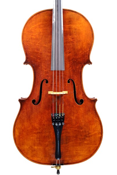 This fine cello was made by Thanh Kim, one of the finest makers at the W.H. Lee shop and is of slightly small dimensions (between 3/4 and 7/8ths size) with the top slightly larger than the back, but has a wonderful sound. It’s fun to play with a nice balance and surprising resonance for its comfortable size.
